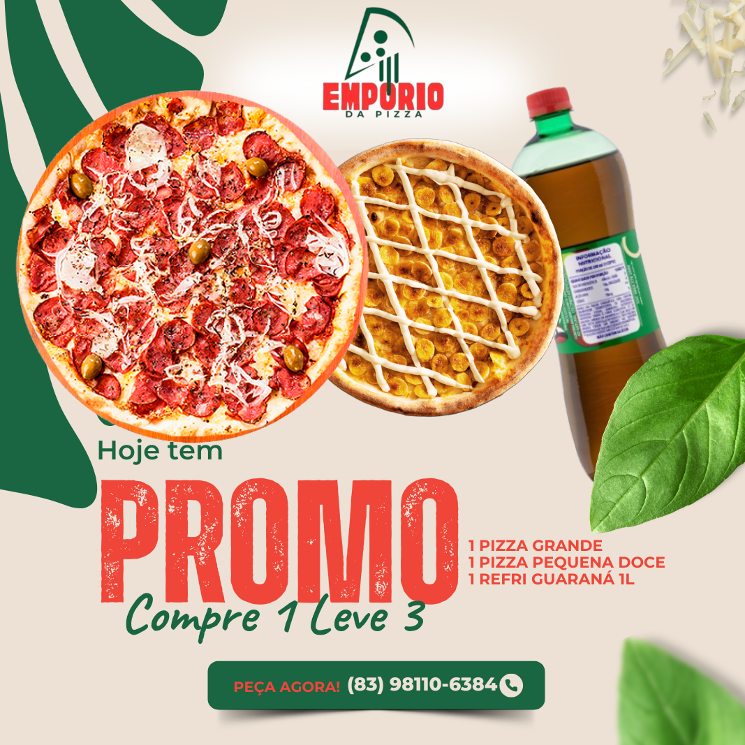 • Combo 3 por 1 - uma pizza grande + uma pizza pequena doce + refri de 1l